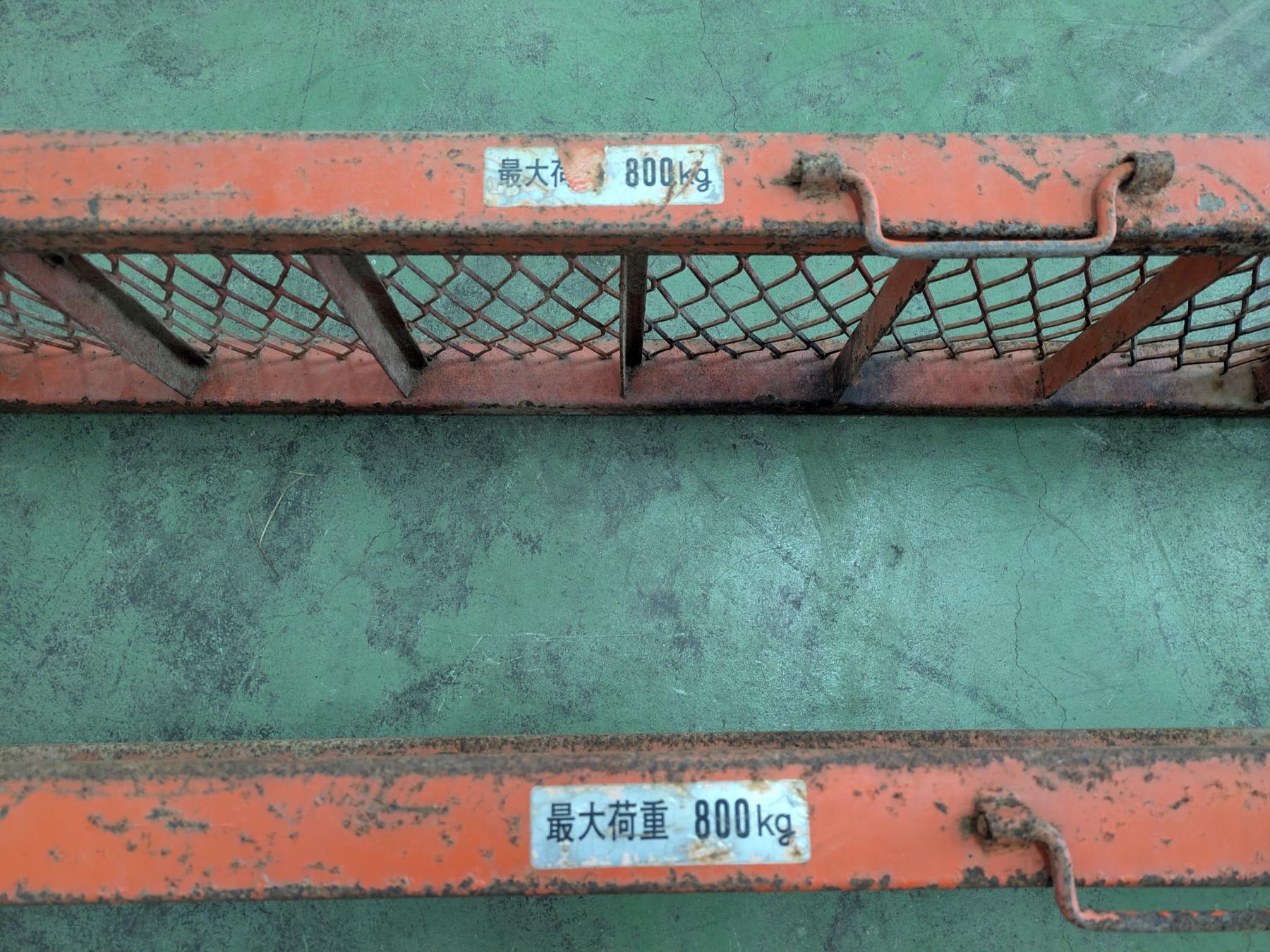 | 引き取りに関して | ●アルミブリッジあります。 ●フォークリフトあります。 ●クレーンあります。 ●ロープや荷締めバンド等をたくさんご持参ください。お品物の固定はお手伝いいたします。積み込みについてはご安心くださいませ(^^) |
