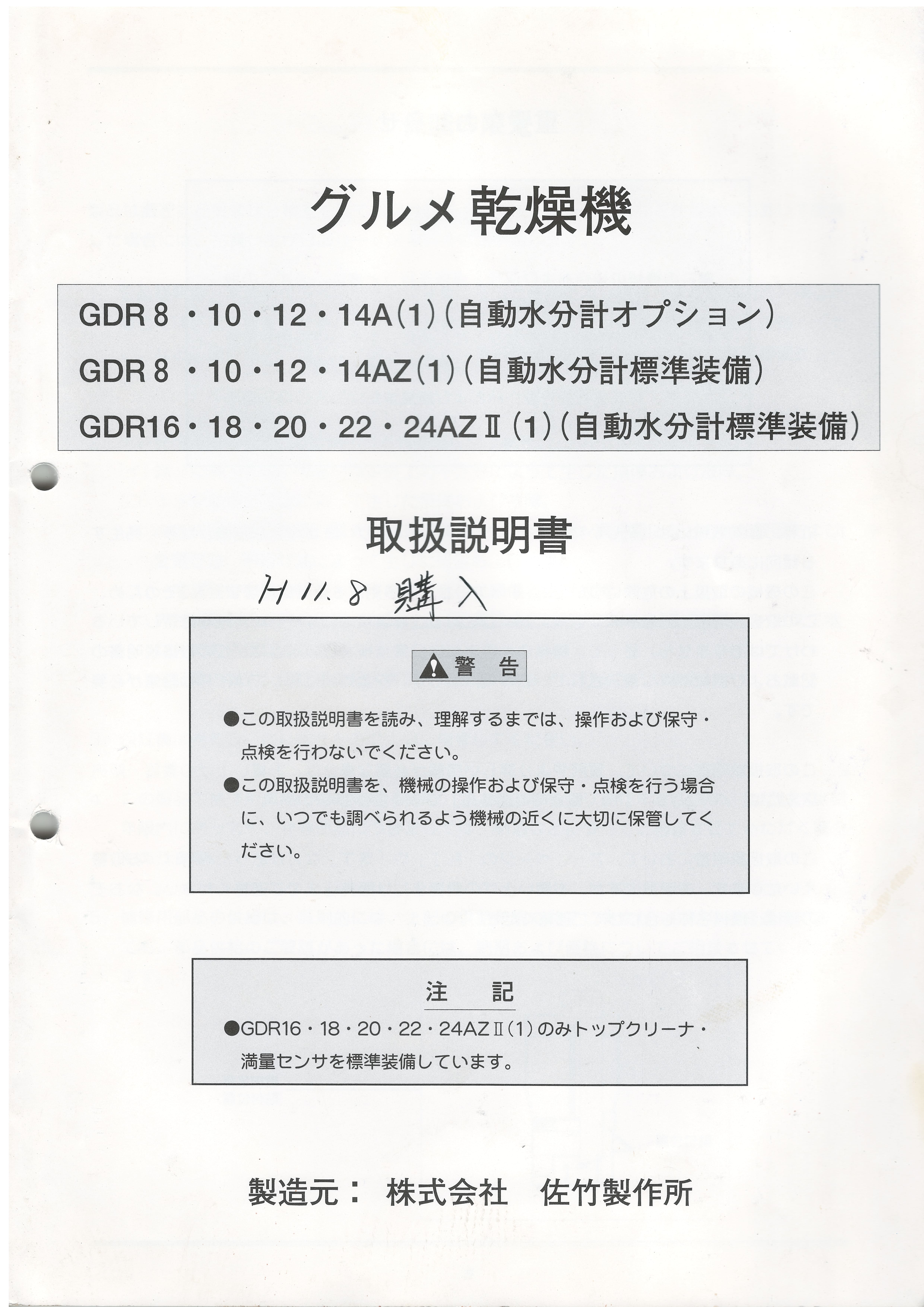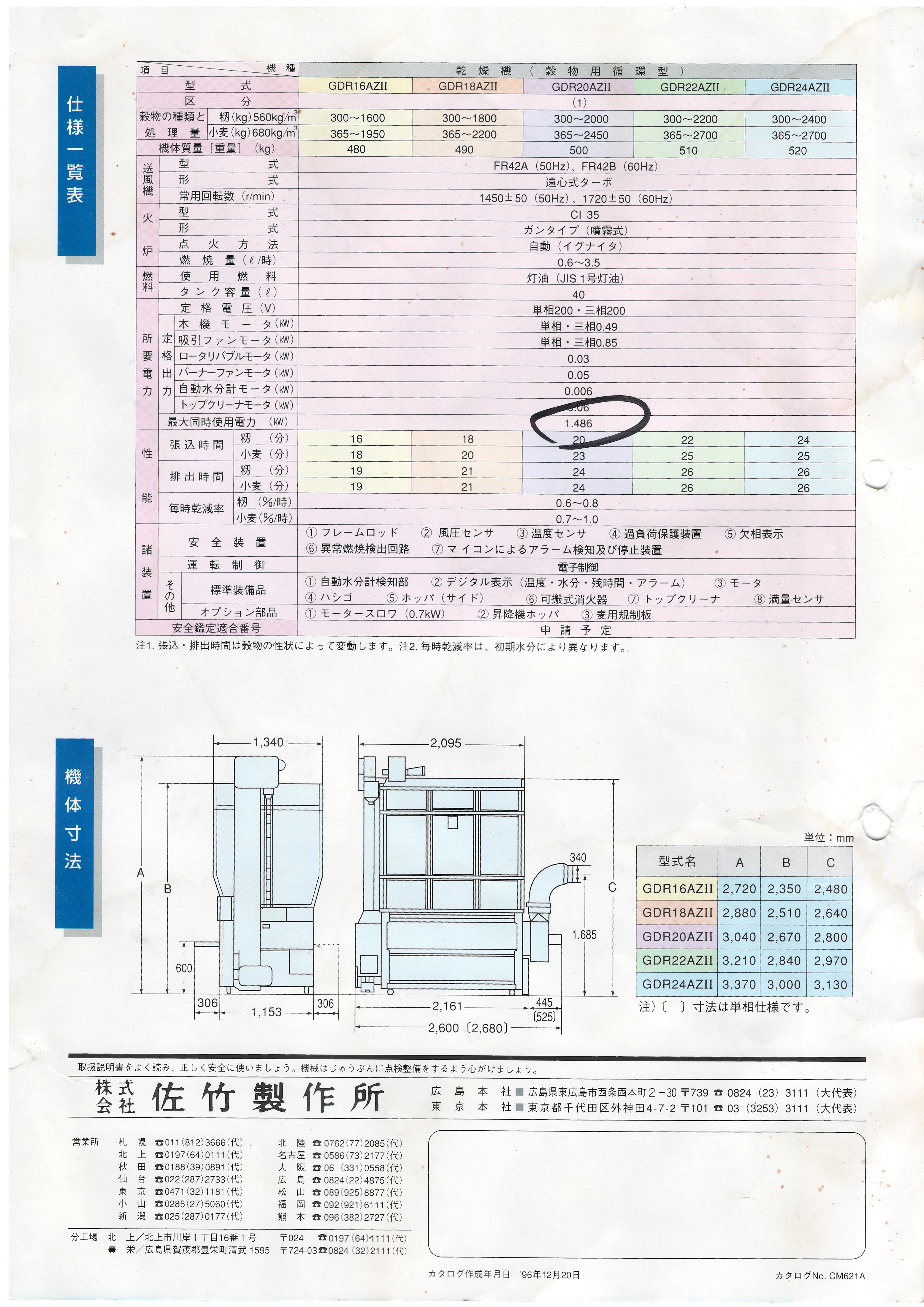 【売約済】 清掃済、解体済 組み立て説明書有、取説あり、綺麗な穀物乾燥機 サタケ GDR22AZⅡ