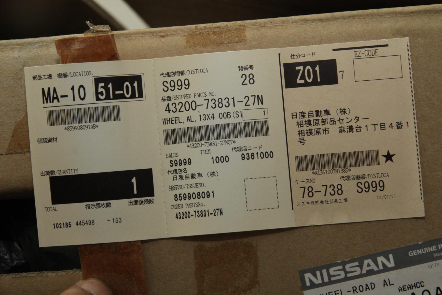 【売約済】 日産純正アルミ未使用 4本 詳細不明