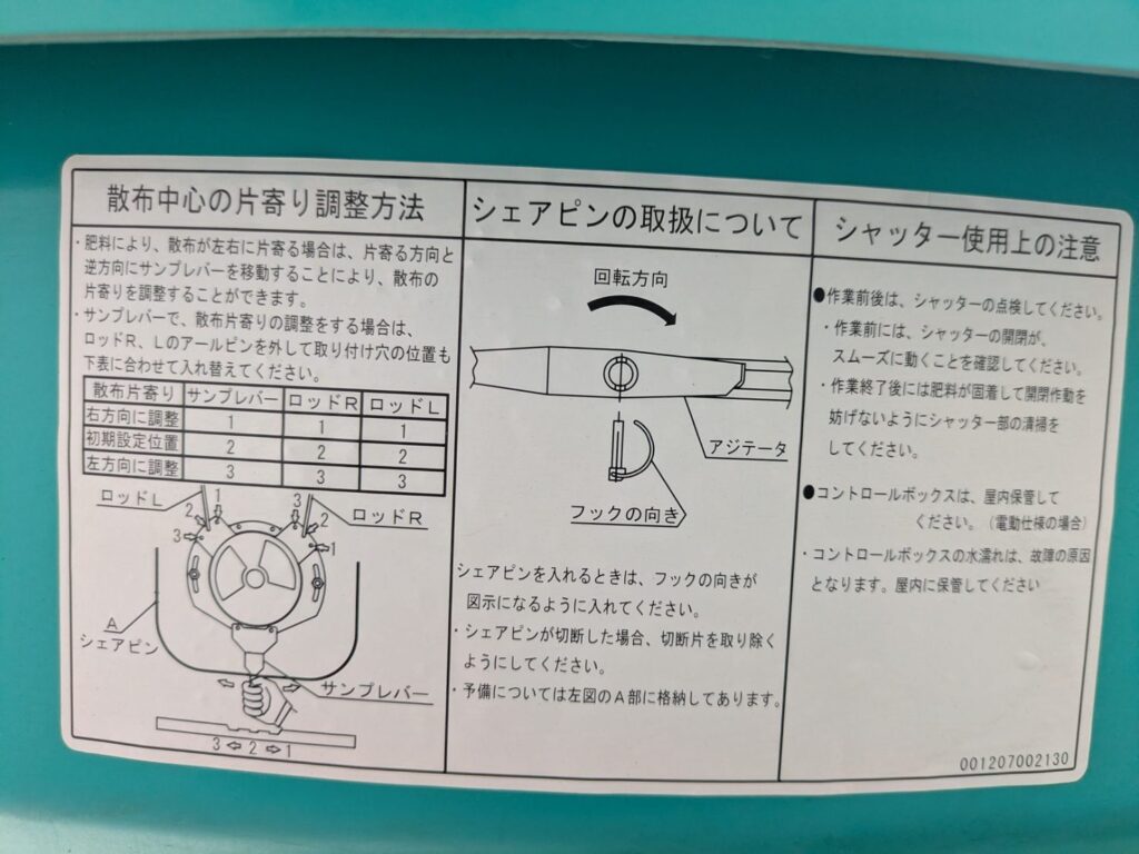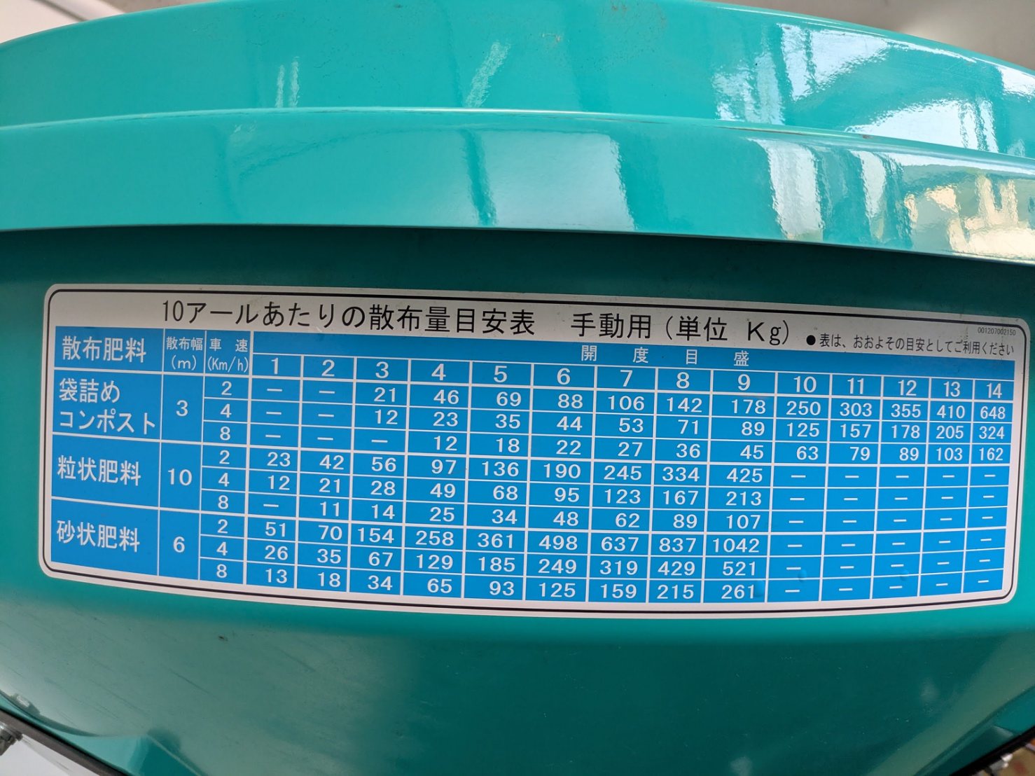 - 粒状化成の場合:1.0~8.3分/10a(1000㎡)